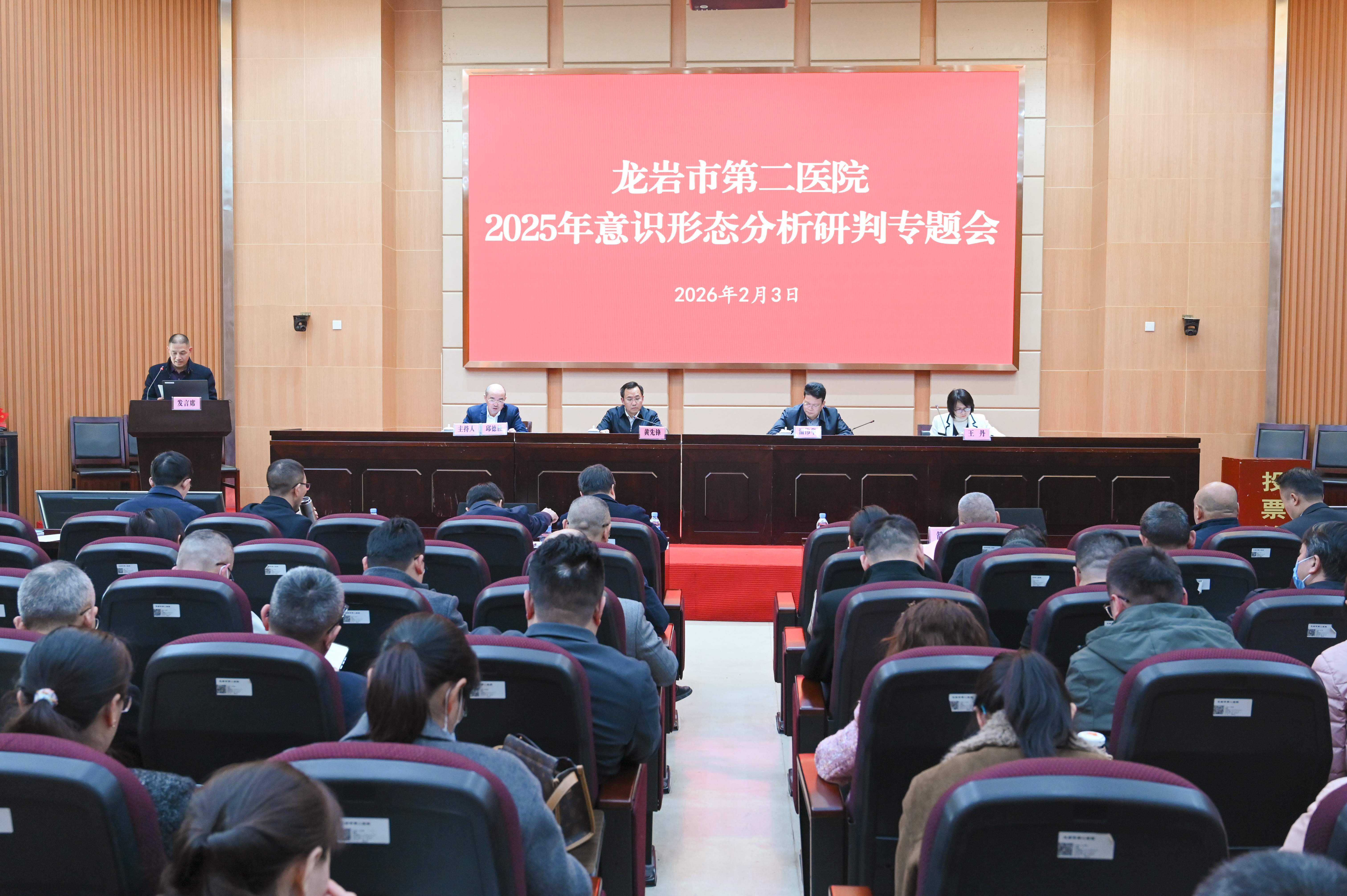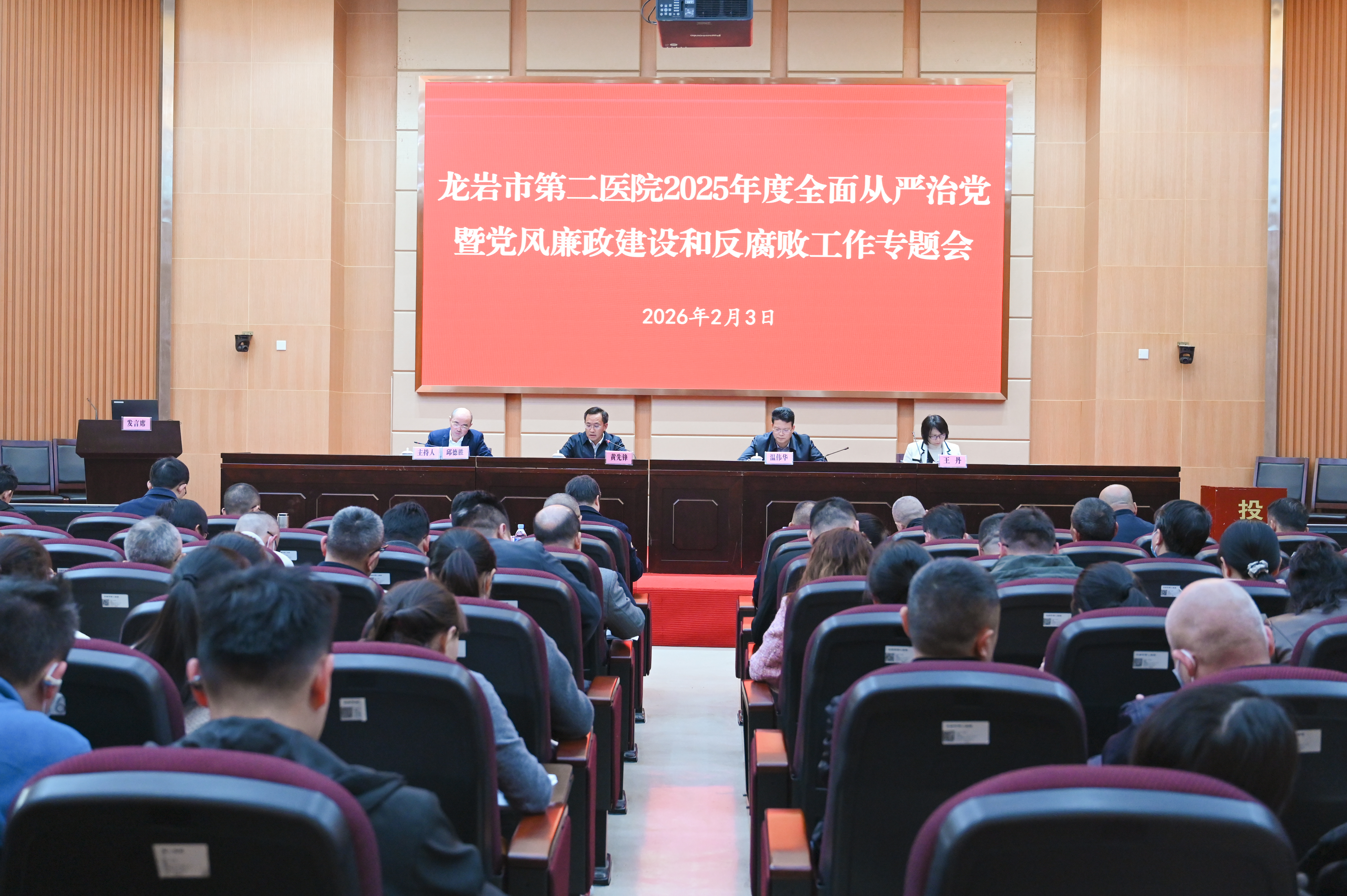 2月3日,龙岩市第二医院召开2025年第二次全面从严治党暨党风廉政建设和反腐败工作、政治生态分析研判、意识形态分析研判专题会议。市纪委监委驻市卫健委纪检监察组长温伟华、市卫健行业党委王丹到会指导。医院领导班子成员、全院中层干部参加会议。