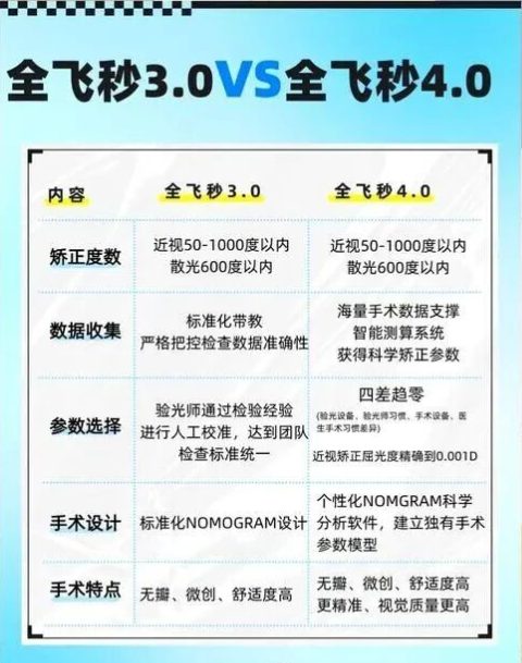 作为目前全球领先的飞秒技术,全飞秒4.0在3.0基础上全面升级,其核心优势体现在:精准度跃升、个性化定制、术后体验更优、视觉效果更好。