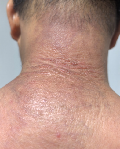 57岁的赖大叔(化名,下同)因颈项和背部皮肤持续紧绷、僵硬伴随麻木疼痛长达七年之久前来求诊。起初,仅颈项部皮肤出现肿胀硬化现象,随后逐渐蔓延至肩背区域,还伴有剧烈瘙痒和刺痛感,尤其在夜间症状加剧,严重干扰了睡眠质量和日常生活。常年辗转就医的他一直被误诊为“皮炎或硬皮病”,历经多年反复治疗,效果始终不佳。